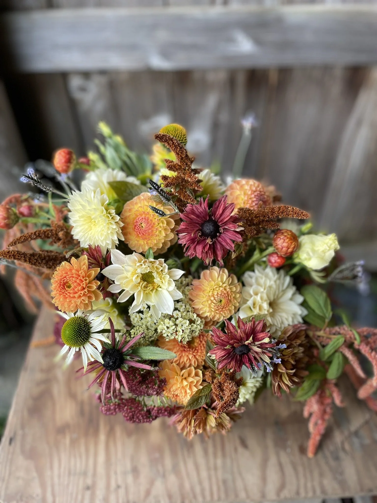 Our passion is sharing the unique beauty of locally-grown flowers with our community. We offer hand tied bouquets, custom arrangements, workshops and wedding/event florals. Each stem is carefully harvested at its peak, ensuring you receive the freshest, most vibrant blooms possible.